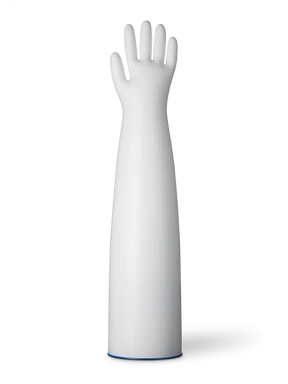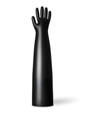 Guante de poliisopreno isobutileno para caja de guantes, montado sobre un anillo de soporte. Excelente impermeabilidad a gases, buena resistencia química y alta resistencia al ozono y a los rayos UV. Guante disipador de descargas electrostáticas conforme a la norma EN 16350. Protección contra la contaminación radiactiva.